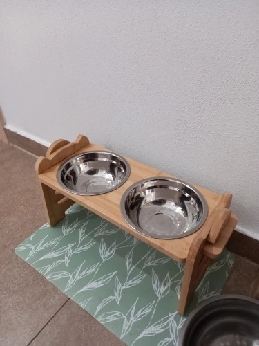Support cool avec des bols, plus adapté aux races moyennes et petites, mon Jack est de la bonne hauteur pour cela, mais les bols sont petits.